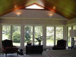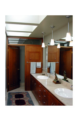 The original 1960’s residence was designed as a pair of volumes with separate Dutch gable roofs and a stair volume as a connection. The renovation opened up the room sequences in the exiting house to provide greater flow between the living spaces and added a master bedroom as a third volume. The addition created an effect of a series of pavilions where the solid and the voids were reversed allowing maximum light in the final bedroom space. The existing kitchen, family and sitting room were opened up and new wood furnishings provided space definition and display surfaces for the owner’s art collection.